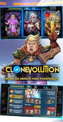 Adentre o universo estratégico de Fundo de Clone Evolution - Clone de Evolução, onde a inteligência artificial trabalha a seu favor. Mesmo quando você está ausente, seu exército de clones e mutantes continua a progredir, treinando, evoluindo e coletando recompensas através de um sistema automático de última geração. Mergulhe no banco genético mais abrangente já imaginado, com mais de cem genes de lendas históricas como Alexandre e antigos faraós, cada um pronto para integrar suas fileiras. Equipe seus combatentes com chips de sistemas duplos e armamentos formidáveis para criar heróis únicos, com atributos de combate incomparáveis, forjando uma legião invencível.