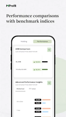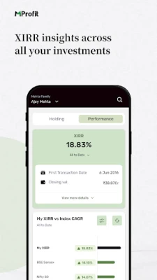 Mantenha-se à frente de suas finanças com a aplicação MProfit, desenhada para trazer a inteligência do seu portfólio diretamente para o seu smartphone ou tablet Android. Agora, todo o seu patrimônio, incluindo dados de PMS e F&O inseridos na plataforma MProfit ou compartilhados pelo seu consultor financeiro, está acessível em tempo real. Desfrute de uma visão clara e atualizada dos seus investimentos, garantindo que você esteja sempre conectado à sua saúde financeira, onde quer que esteja.