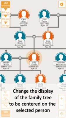 A facilidade é o coração da experiência. Adicionar pais, filhos e cônjuges é tão simples quanto um toque, permitindo que sua árvore genealógica se expanda organicamente. Quer ajustar a ordem dos irmãos? Basta um simples arrastar e soltar. Para famílias com muitas ramificações, a visualização inteligente do aplicativo é um diferencial: ao selecionar um indivíduo, ele automaticamente se posiciona no centro da tela, tornando até as conexões mais complexas claras e fáceis de compreender.