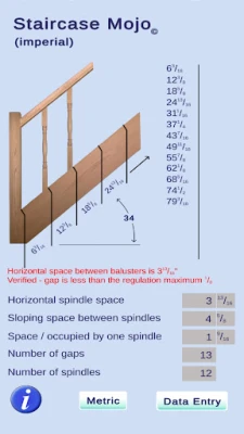 Prossiga para a etapa crucial de medir a distância diagonal entre os novos, seguindo a inclinação da escada, e não a medida horizontal. Uma vez preenchidas as quatro caixas de entrada essenciais, um toque no botão "Calcular" revelará resultados abrangentes. Visualize instantaneamente uma lista detalhada das posições ideais dos fusos (balaústres) e as larguras de espaçamento precisamente ajustadas para a inclinação, garantindo harmonia e conformidade no seu design.